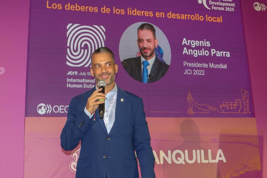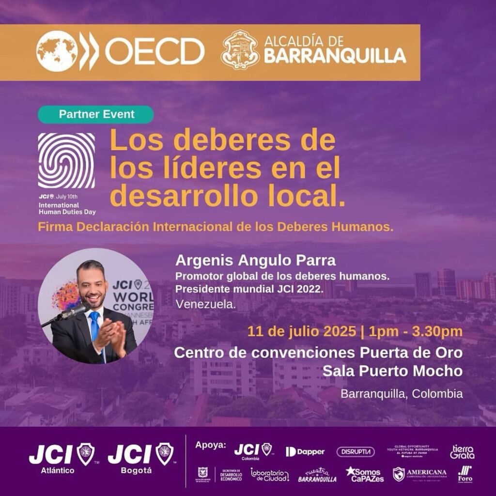 Barranquilla, Colombia – Before a packed room, with attendees even standing, Our YAST Group Co-Founder Mr Argenis Angulo, global proponent of the Universal Declaration of Human Duties, delivered a keynote titled “Human Duties of Leaders for Local Development” at the OECD Local Development Forum.
